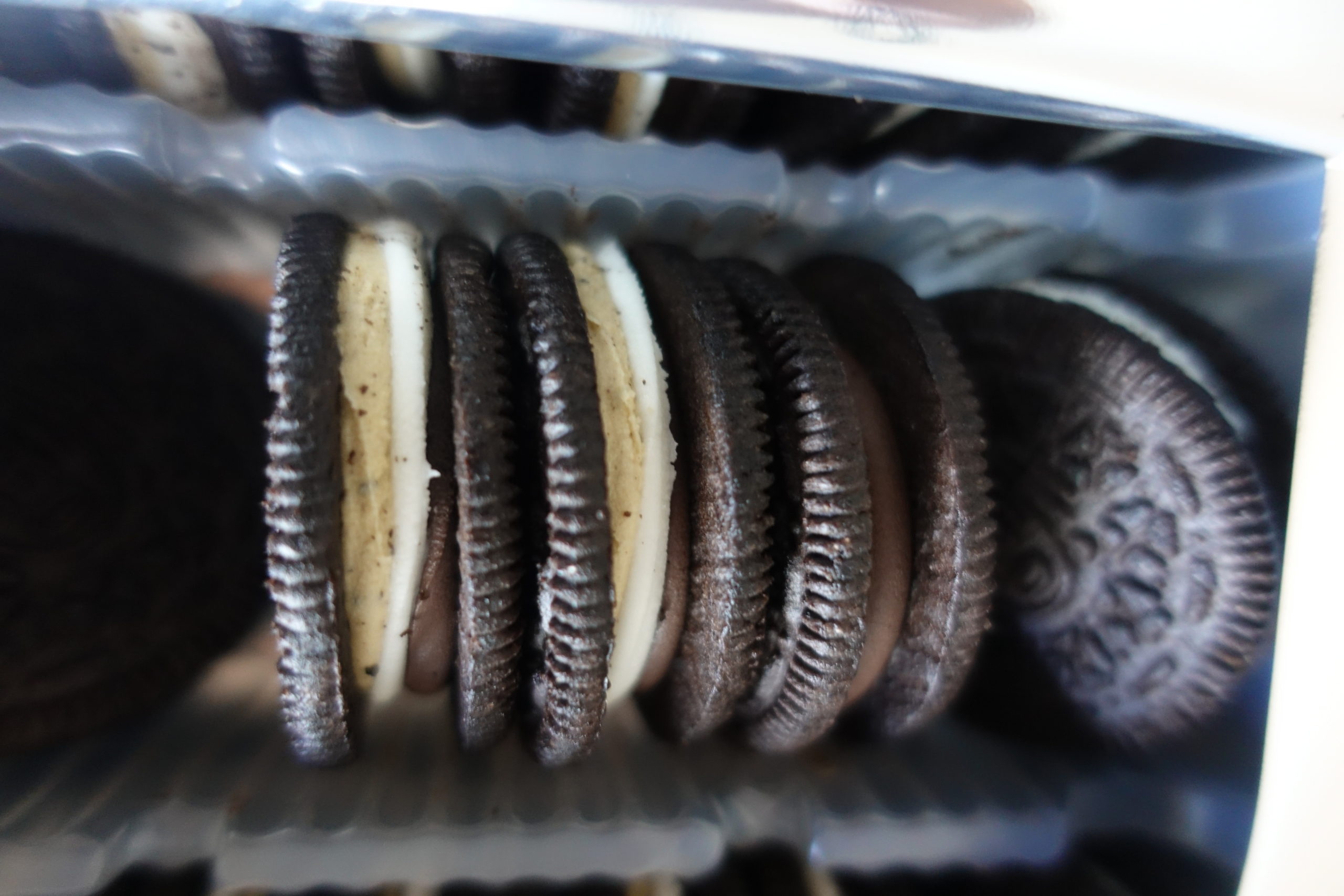 Ok, now that my freak out is over, let’s get into the review. Unlike normal Oreos, these Oreos have additional layers of “brownie” cream and “cookie dough” cream on top of the normal oreo cream, essentially making them triple-stuffed Oreos. In other words, she a thickie.