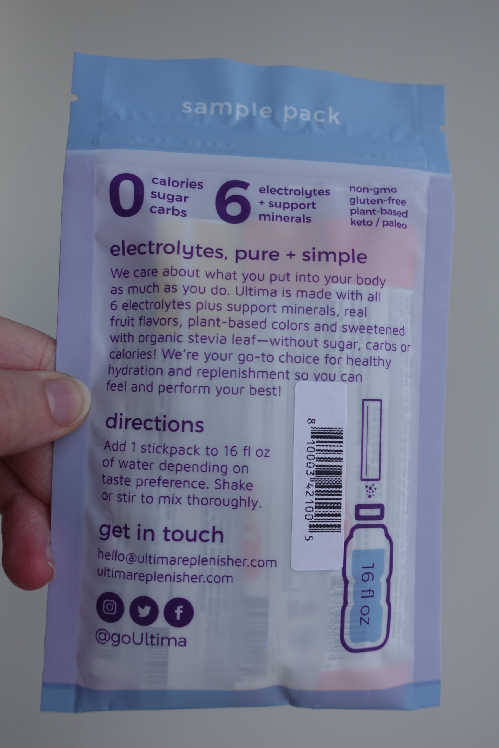 This Ultima Replenisher electrolyte powder was one of them. This fit AF girl on TT swore that putting this in her workout water was game-changing. I had to see it for myself. So I ordered the sampler pack for myself to try out all their flavors. I tried all except grape because… grape water? No thanks.