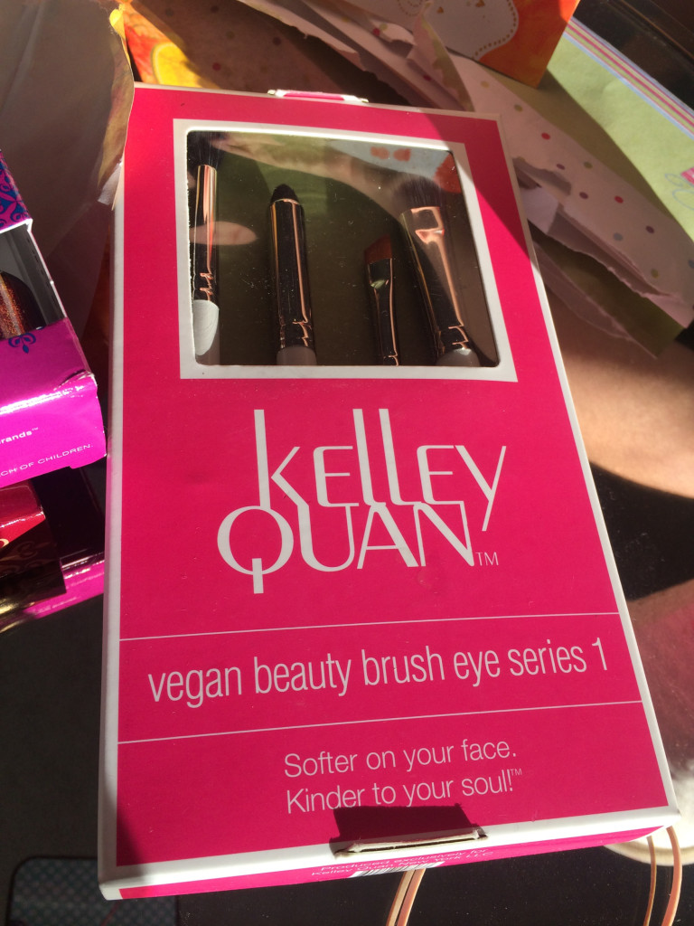 Among other cute little gifts, out family friends Sonia and Marcia were also thoughtful enough to get us vegan makeup brushes. (<– sorry, the grammar was really off in that sentence). Anyways, how sweet! 🙂