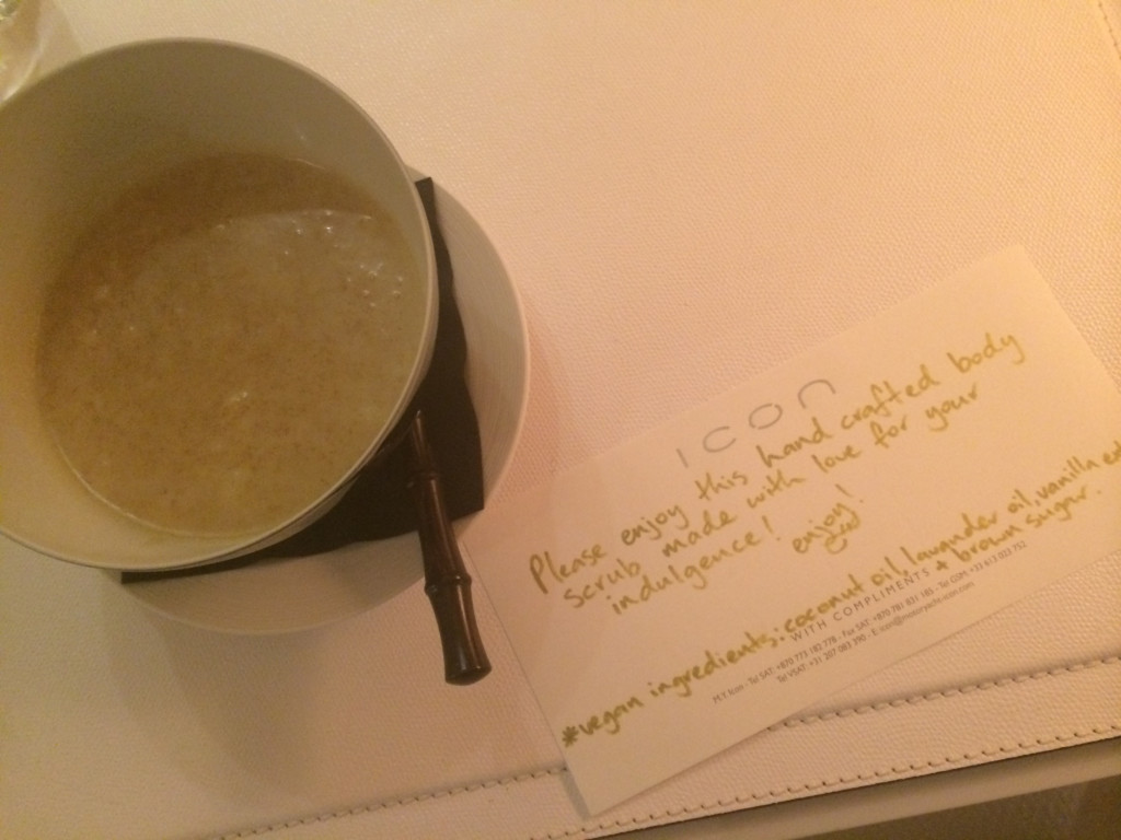 So, at the place we were staying on vacay they found out we were vegan and guess what? They made us a complimentary vegan body scrub!!! #feelingspecial #loveme #inferioritycomplex Anyway, they made it with: coconut oil, lavender oil, vanilla extract and brown sugar. Mama C loved it so much, she asked to bottle it up…