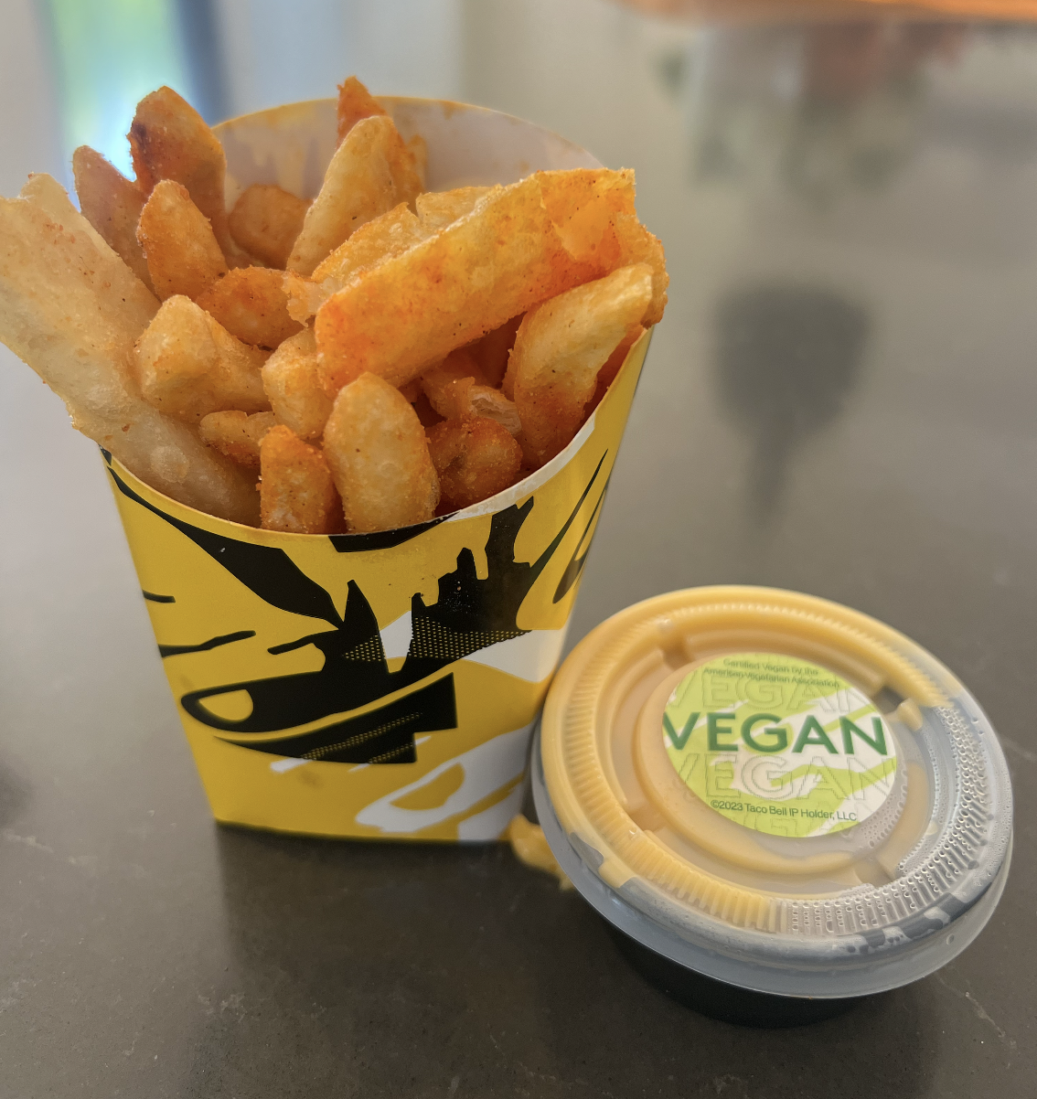 In terms of fast food chain innovation, Taco Bell is truly #slaying the game. First, they tried out a limited run for their vegan crunch wrap supreme and now they’re trying out a veganized version of the seasoned fries with nacho cheese sauce. And, if I remember correctly, this seems to be the same vegan…