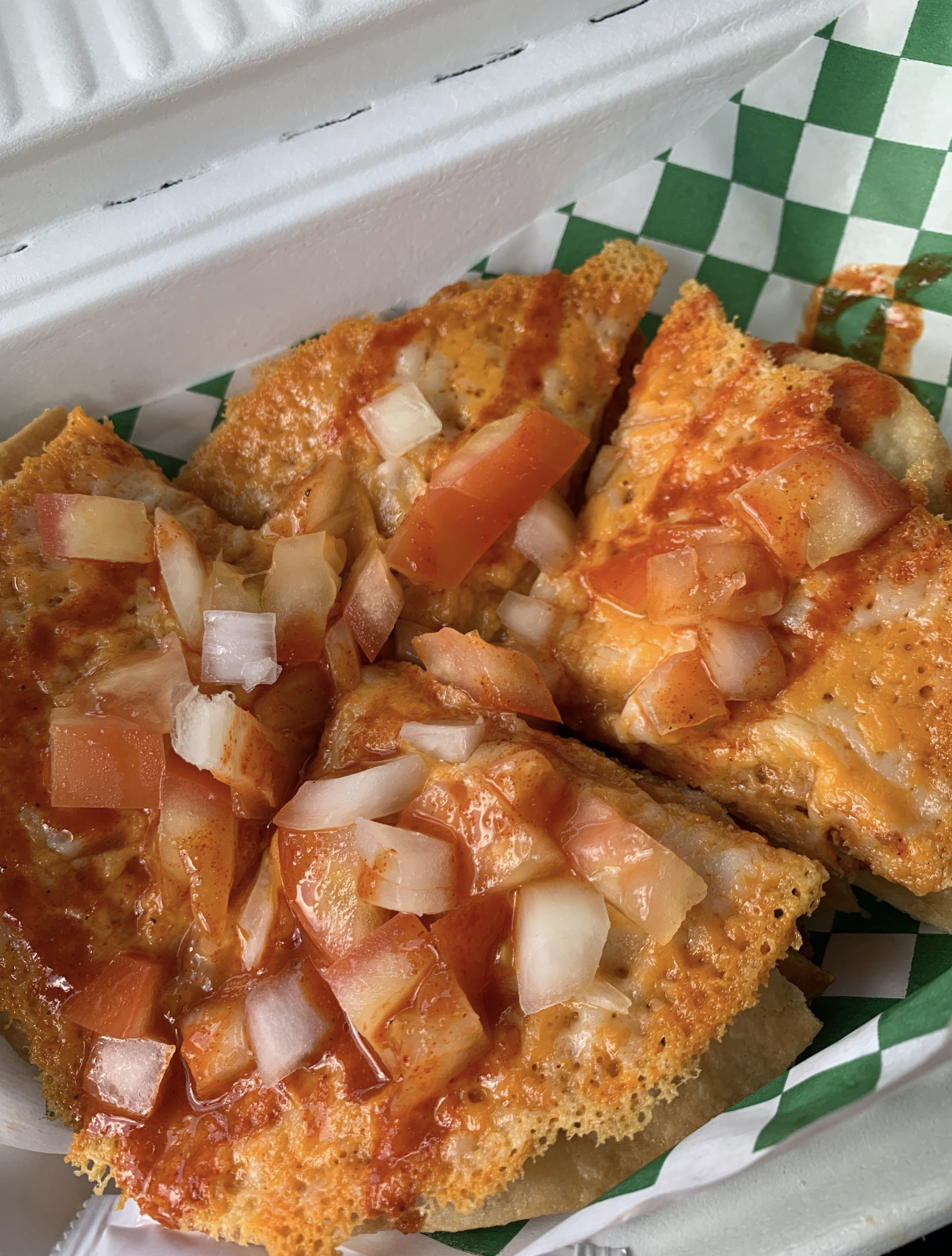 The Korean corndogs were sooooo yummy! They almost tasted like a dessert more than a savory dish. I expected them to taste more like the corndogs you get at carnivals but they legit tasted like a donut with a really yummy vegan hot dog inside. The sauces on top were bomb AF (ketchup and honey mustard). The sauces were so good that if I went back, I would ask for extra sauce on top. Drizzle that ish!!!!
