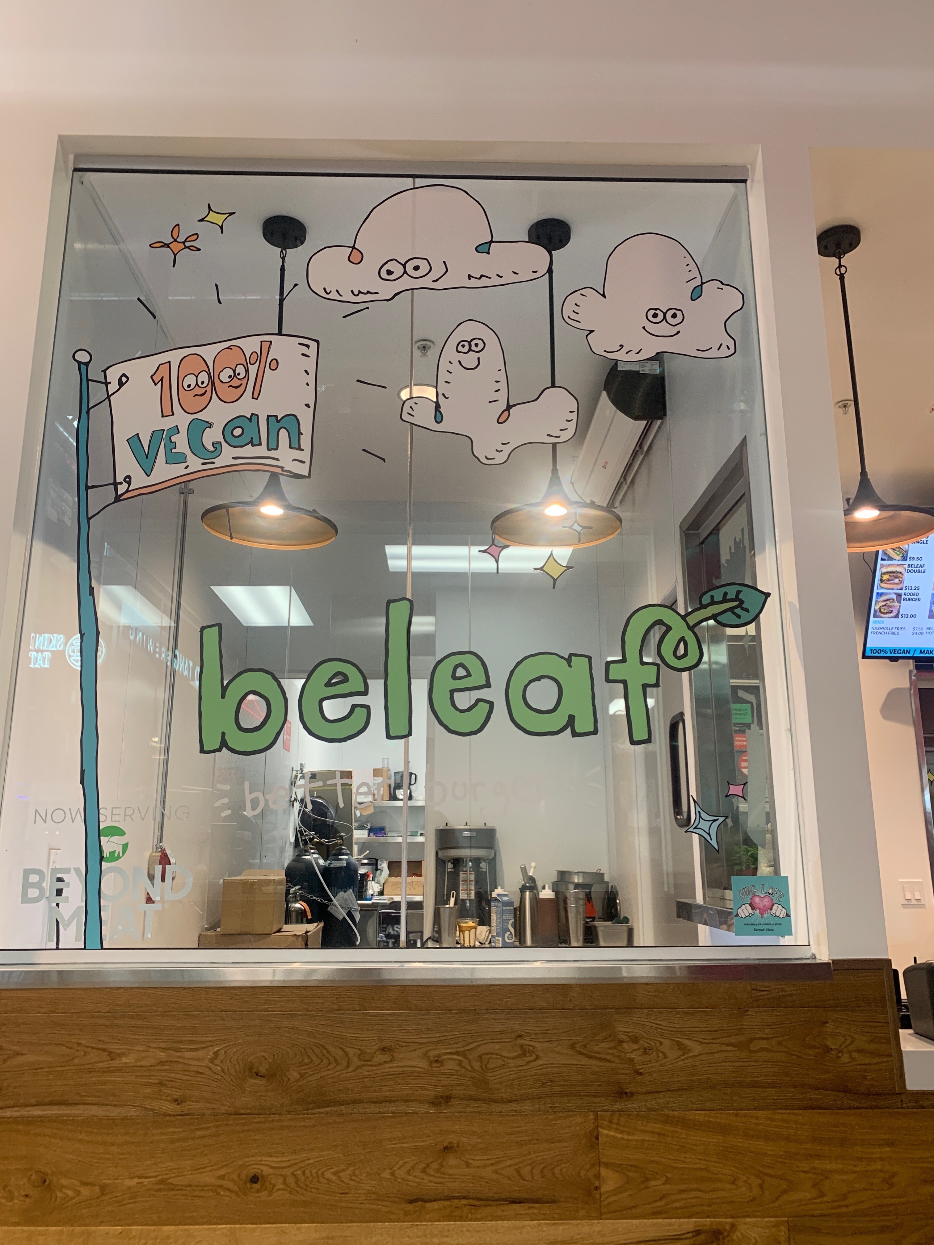 Beleaf Burgers is located in an indoor market called Rodeo Market (kind of like Grand Central Market in dtla but way more spacious and lowkey). The woman at the register was SO nice and complimented my new vegan purse (Angela Roi makes the chicest vegan purses. Totally worth the splurge if you’re looking for a new purse)![]()