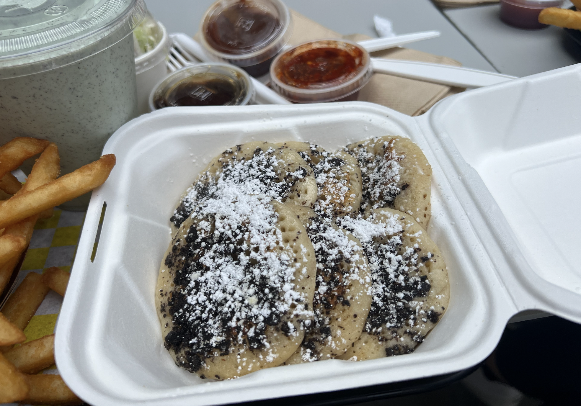 - Oreo pancakes. Really yummy! 7 or 8/10. The oreos were killer and they were so cute and perfect size.