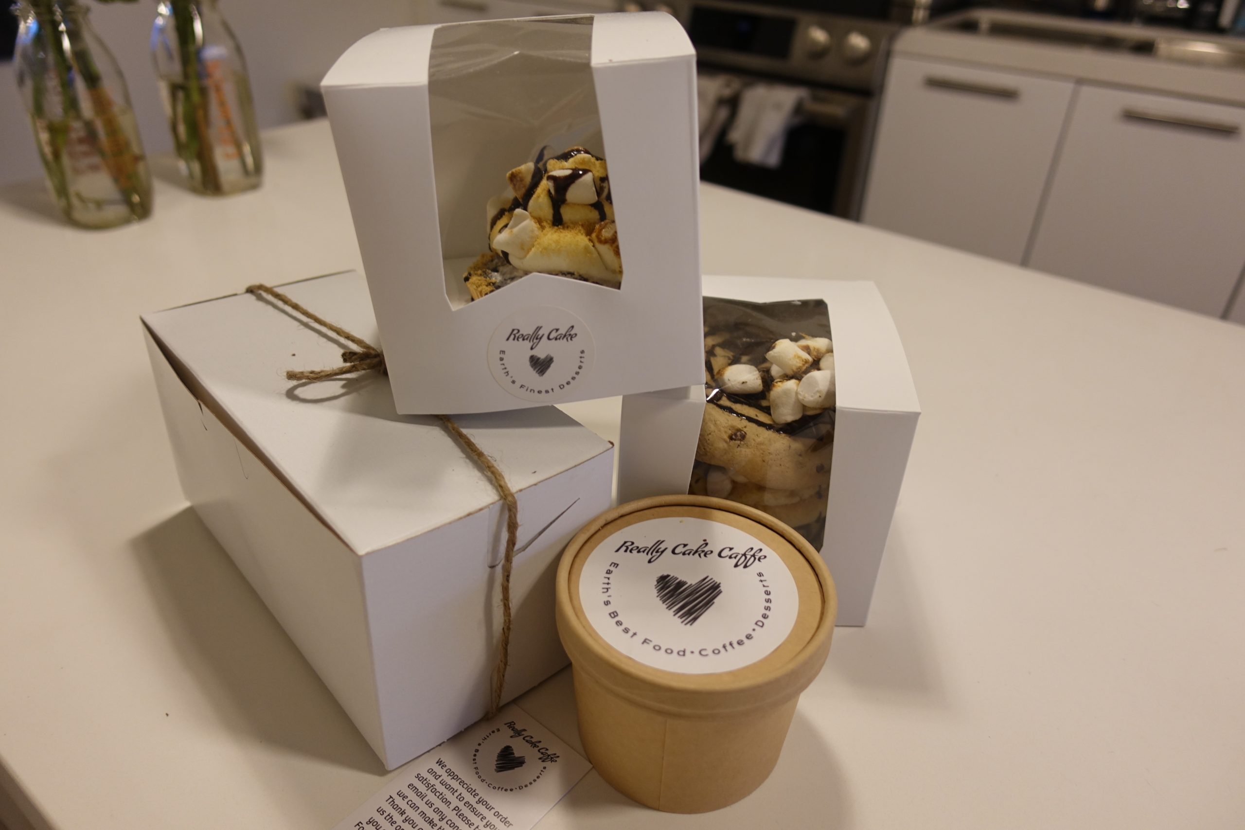 My sister had a gift card to Door Dash and was determined to use it so we went on the search for a delicious vegan dessert. Lo and behold, we found Really Cake Caffe. This isn’t just any caffe, it’s a CAKE caffe. And it’s ALL VEGAN. Yep, you heard that right.