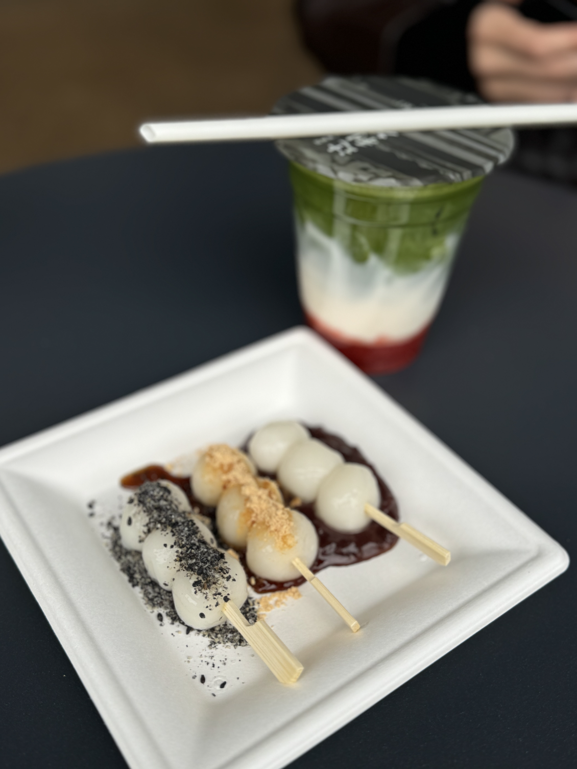 Our last stop was this adorable Japanese stand that did strawberry oat milk matches and dango (one with soy powder, one with red bean, and one with black sesame). My friend who got the matcha loved it. The dango was kinda #wet and not great, but the lady making it was so adorable, so I’ll let it slide.