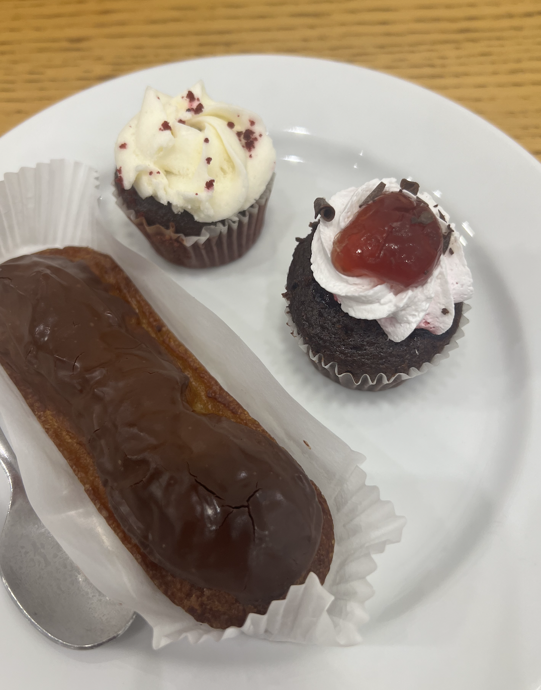 Bella got the eclair and some mini cupcakes. She felt eh about the eclair but really enjoyed her cupcakes. So maybe the cupcakes are the way to go!