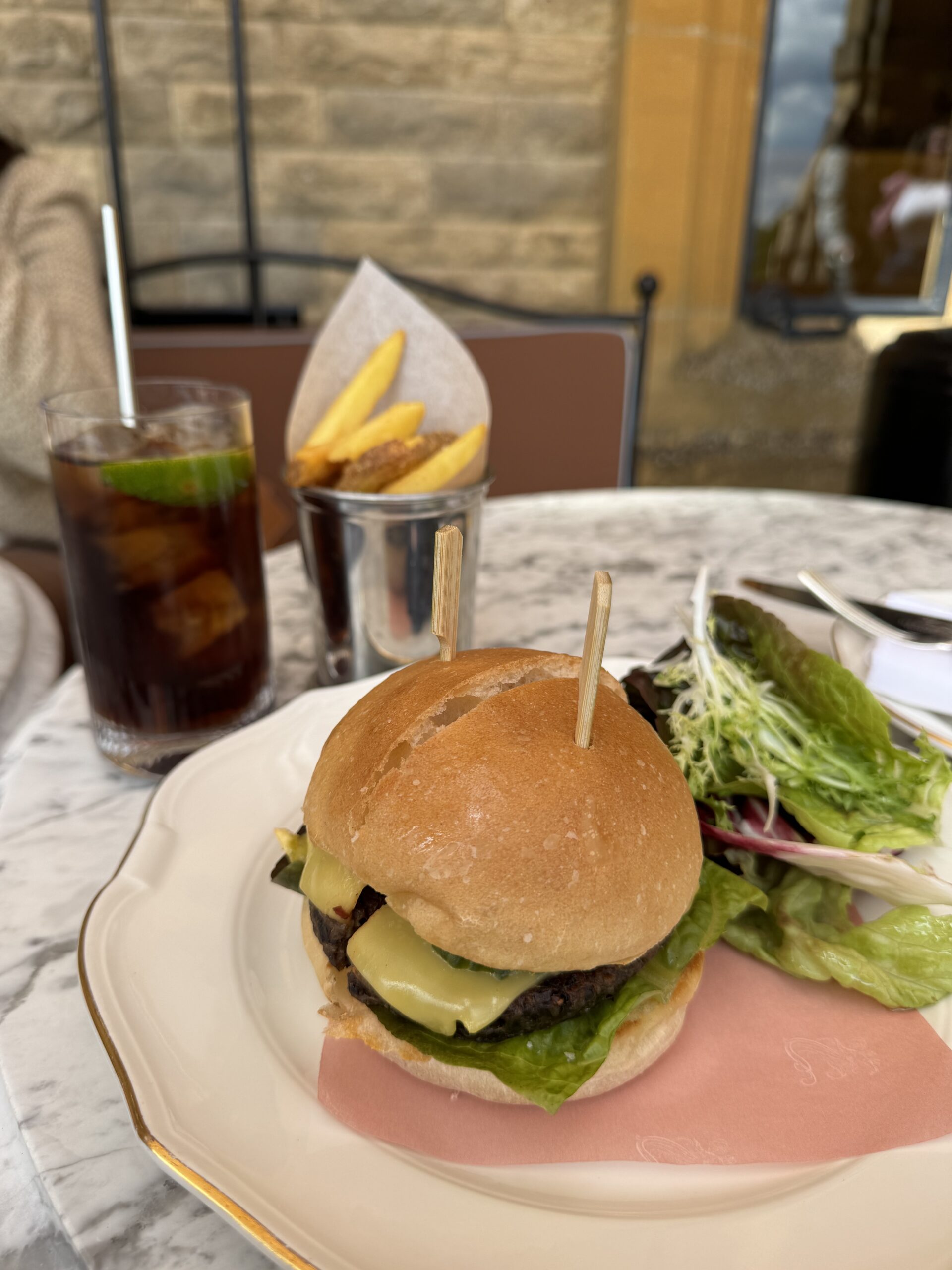 To start, the Brasserie and outdoor dining had a legit plant-based cheese burger on their menu. Insane. It was made with vegan cheese, lettuce, a veggie patty, tomato, vegan burger sauce, pickles, and beetroot jam. Super yummy and perfect for a little lunch by the pool!