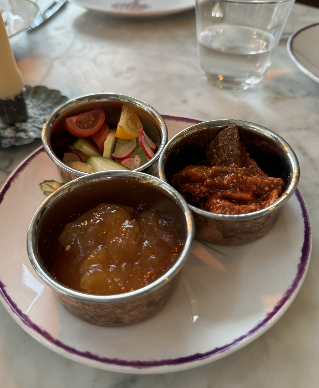 Then, we had dinner at another on-site restaurant called The Glasshouse, which is located in this room with entirely glass walls and ceilings. Very pretty. I’m not sure what the normal menu looks like, but the night we stayed at the manor, they were having Indian food night with a preset menu. However, they were graciously able to accommodate for us vegans with zero hassle at all.