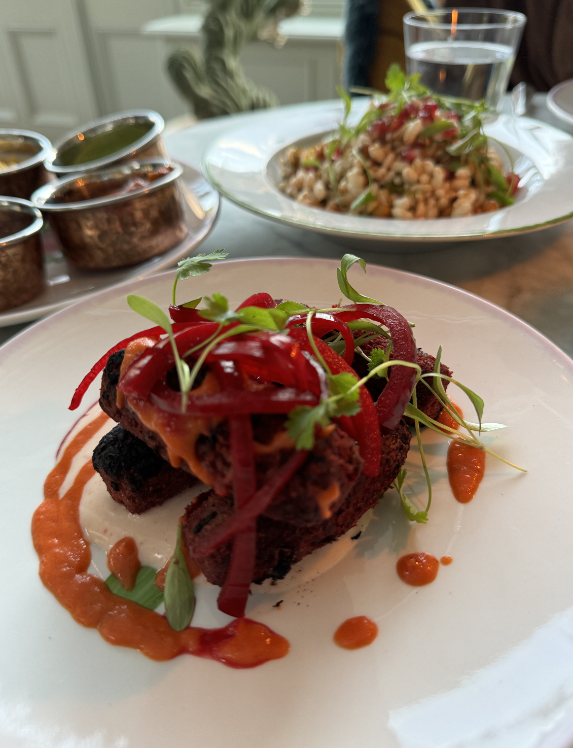 Next on the list was the breakfast we had at the Brasserie, this time indoors. They also had a bunch of vegan options too! We ended up getting the brûléed grapefruit and the vegan truffle mushroom toast with vegan cream cheese. Both were INCREDIBLE. 10/10 breakfast. Not to mention, they also had a vegan version of a traditional English breakfast that we didn’t try, but it seemed super yummy.