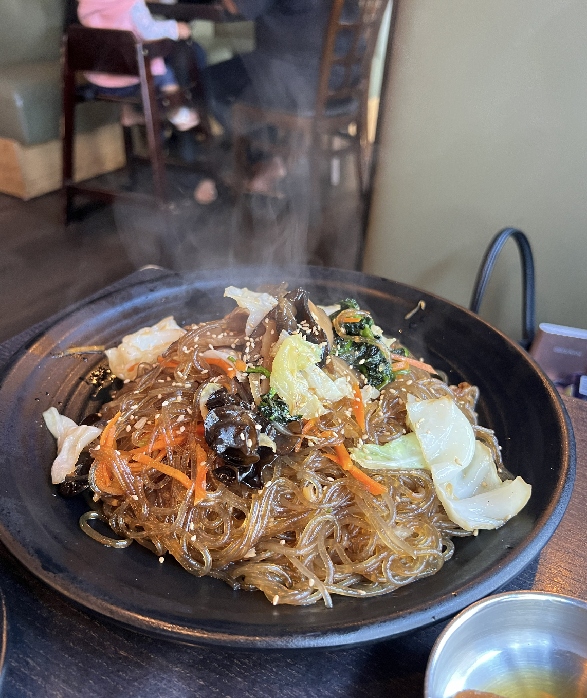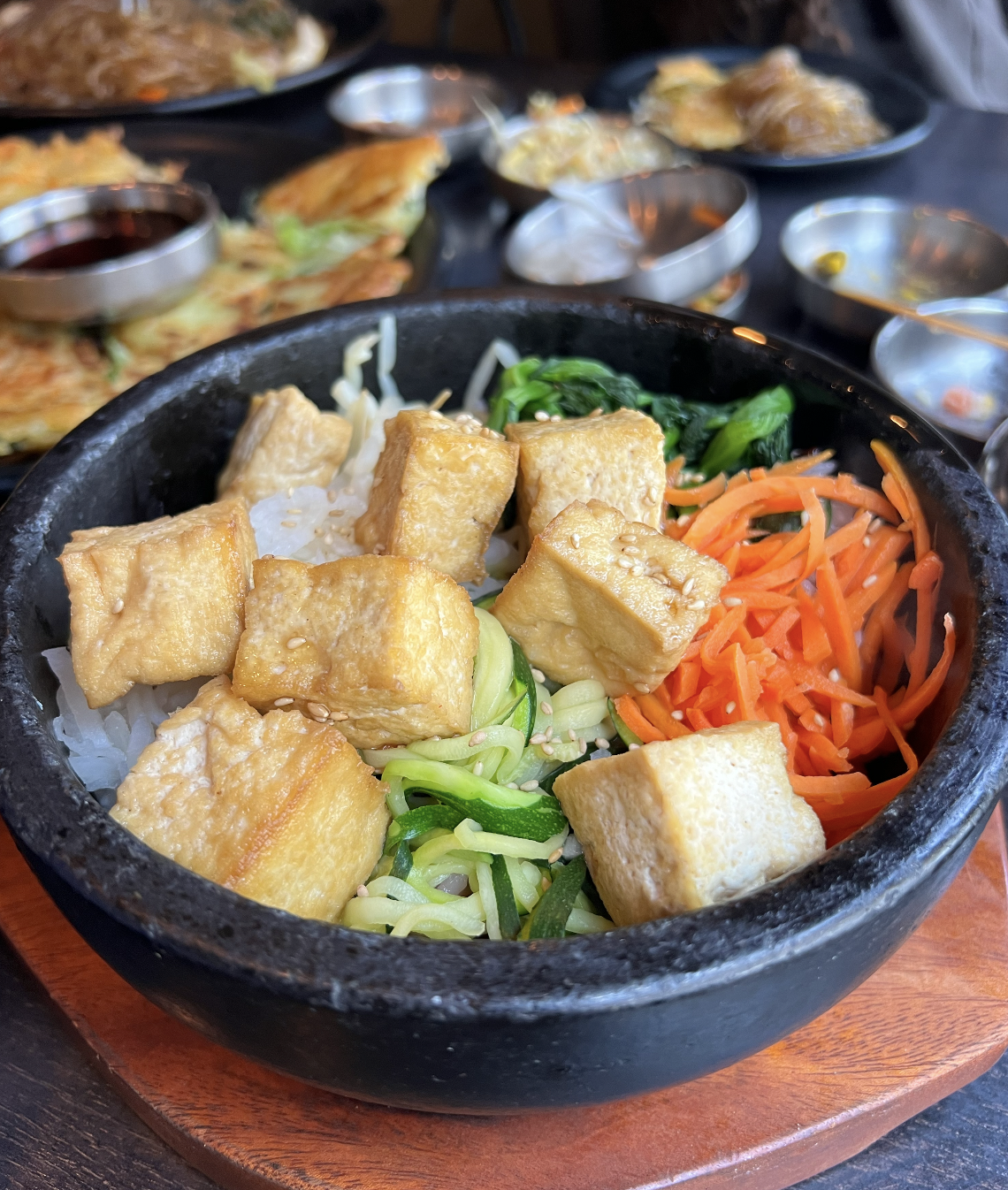 For the meal, we got the japchae (sauteed sweet potato noodles) and the gluten-free version of the veggie bibimbap. The japchae was A FORKIN AMAZING!!!!!!!!!!!!!!!!!!! Another 10/10. Another major slay. The sauce they put on it was scrumptious and the noodles themselves had such a great texture. I want to fill a bathtub with this and sit inside.