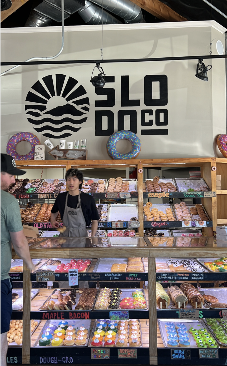 SLO (as the cool kids call it) is a city on the central California coast that serves as a nice mid-way-ish pit stop between LA and Big Sur. Since we were doing a road trip and had a friend who lives in SLO, we decided to stop and get vegan donuts, while also dropping some off at our friend’s workplace. Kill two birds with one stone, right? JK we’re vegans. We don’t kill animals!! But you get it.