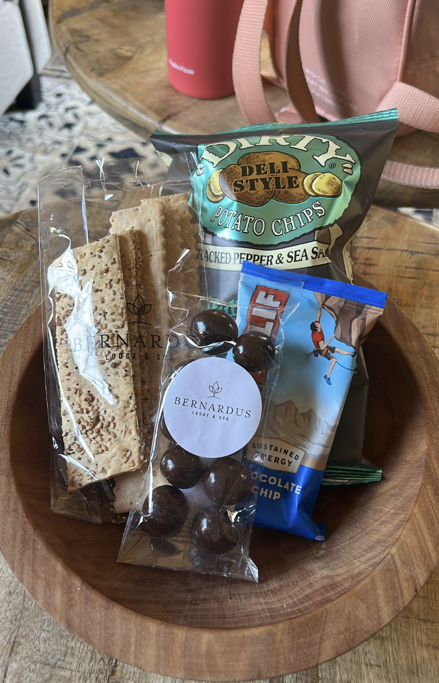 But back to the human food. We didn’t do room service during our stay, but I should mention they had the normal make-shift vegan options like oatmeals and cereals and salads, etc. Not too exciting. They DID, however, leave snacks in the room and a minibar full of drinks – all of which were “free” (as part of the hotel fee and not an additional charge). Luckily, the snack bowl that came with the room had a vegan cliff bar, vegan sourdough crackers, and vegan cracked pepper and sea salt chips. The little chocolate balls unfortunately were not vegan. Everything else was really yummy and useful for the long drive down the Big Sur Coast!