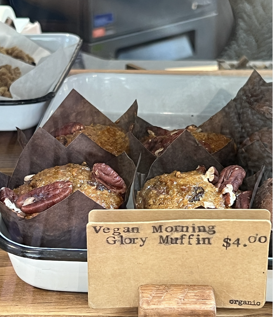 They ALSO had a vegan breakfast muffin, which looked yummy but were in a savory kinda mood, ya know? So we skipped out on this one. Also, what is it with bakeries making all their vegan pastries include nuts and dried fruit and, like, bran and oats? Like, yes, vegans are healthy, but if we’re getting dessert, we’re trying to get dessert, you know? (Am I a choosy begger now? #help)