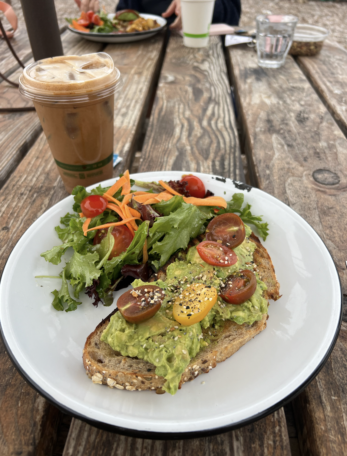 As for the avocado toast, the freshly baked sourdough bread was insanely good and fluffy. It almost tasted like a donut – which is weird to say, but just roll with it. But the avocado toast as a whole was kinda mid. Nothing special. I suggest getting the tofu scramble and maybe a side of sourdough toast with jam. Ooooh, that sounds so yummy now that I’m thinking about it.