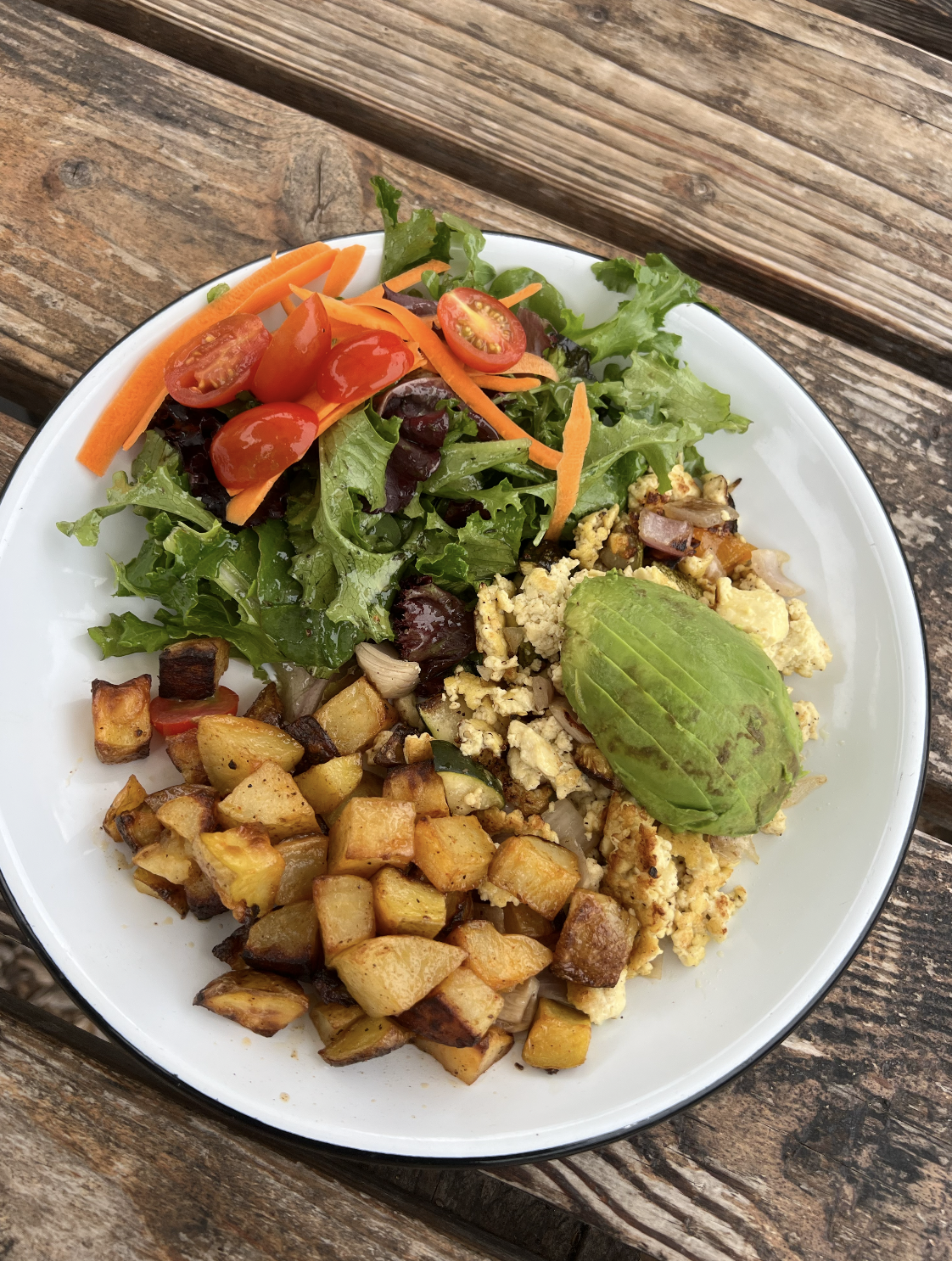 In terms of breakfast, I got the avocado toast and Bella got the tofu scramble, which came with breakfast potatoes. Bella RAVED about the tofu scramble. She said it was the best tofu scramble she’s ever had in her life. I was skeptical because I usually hate tofu scramble, but I tried it and my mind was also blown. It was so savory and delicious. It should be the poster child for tofu scrambles anywhere and everywhere. THEY REALLY DID THAT.
