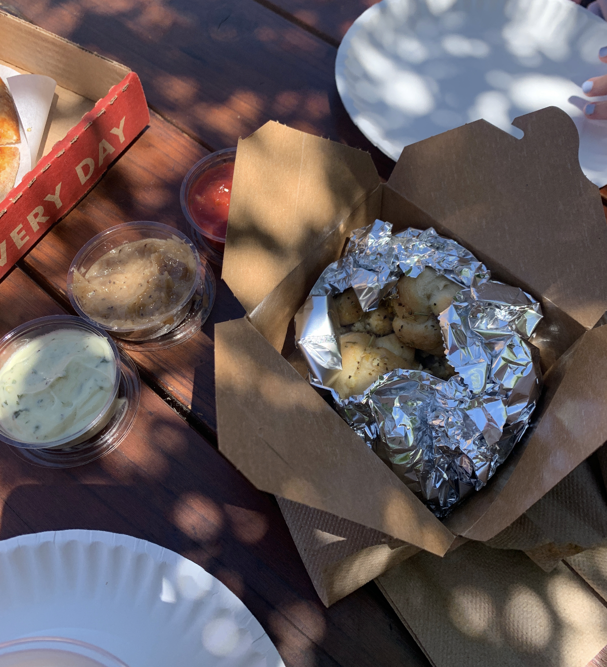 We ended up getting frozen cocktails, a 12-inch vegan pepperoni pizza, garlic knots with 3 dips (vegan ranch, marinara, and caramelized onion), AND cinnamon bun knots with cream cheese frosting. All vegan and all SO AMAZING. My friends and I ate it in a silent frenzy like sharks attacking a sea lion after days without food. It was a magical experience. It was a spiritual experience. The lame pictures I took did not do it justice. So, if you want to experience the magic, it’s literally worth a flight to Reno or Portland.