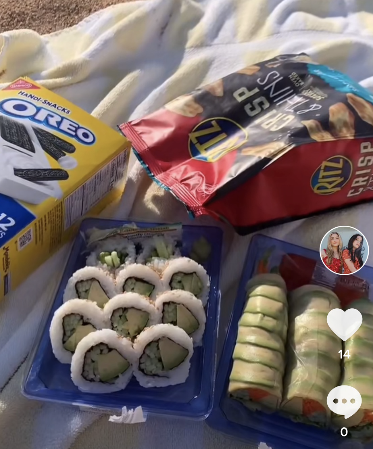 2. Raleys Supermarket – a VERY vegan friend supermarket. Almost like a mix between Whole Foods and Ralphs. I was so surprised at how much of the food (fresh and packaged/products) was vegan. Super convenient. Below pic is from our TikTok video of us having a little picnic at the beach with a few things from Raleys (tiktok is @cohen_twins if you want to check us out/follow!)