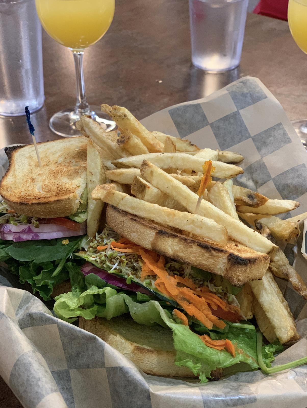 6. Driftwood Cafe – This was a really cute (and popular- the wait was 45 mins) cafe in Heavenly Village near our hotel. They had a few vegan options on the menu which was so awesome. I got the vegan scramble and my sister got the veggie sandwich. Not sure if it was beacuse we were starving, but everything was SOOO good and delicious. 10/10. The scramble had the most delicious hash browns in it and the french fries were so good. Deff recommend if you are looking for a hearty brunch in Tahoe.