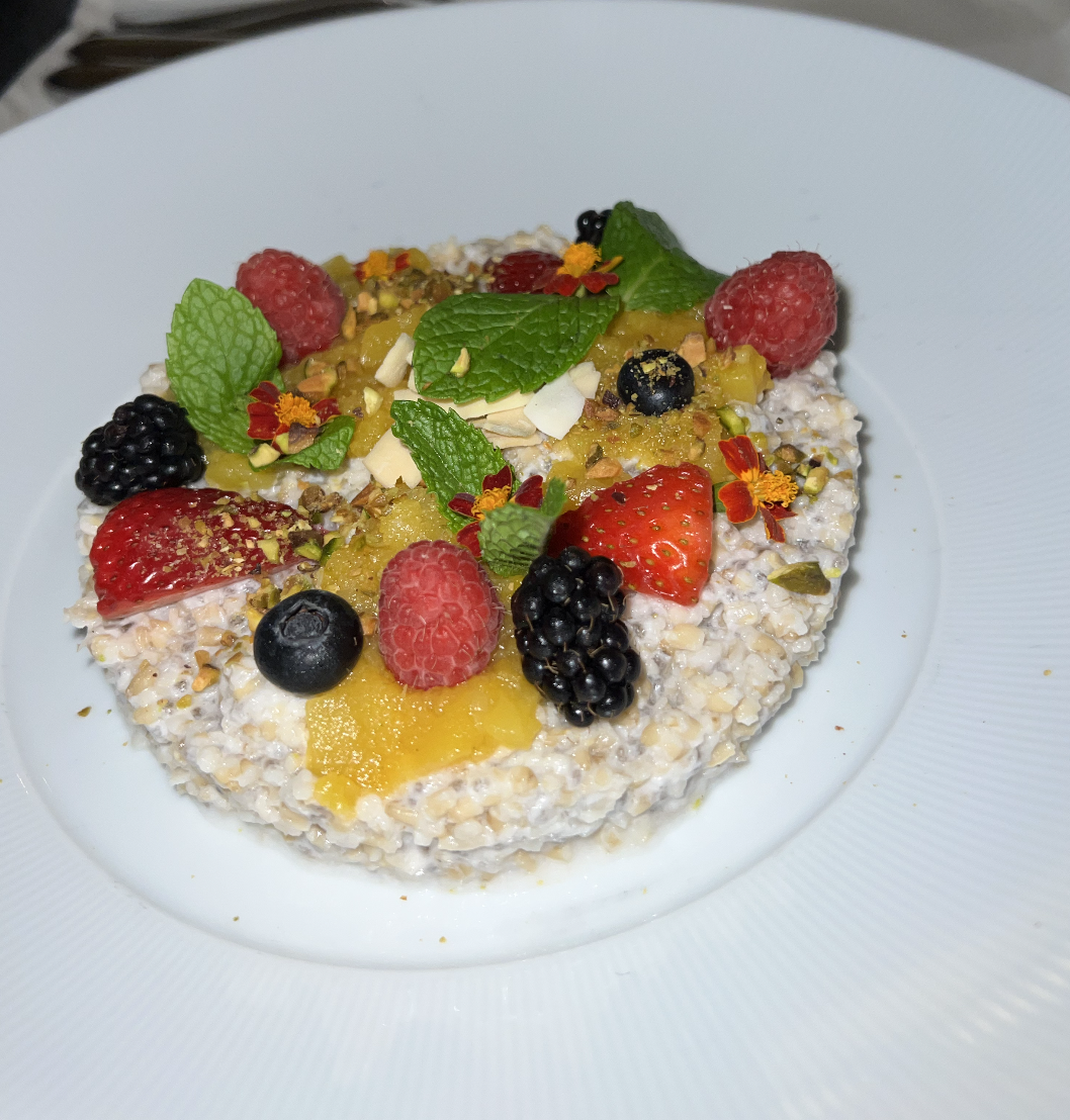 The hotel of course had room service with a few vegan options, including overnight oats, avocado toast, a vegan impossible burger, and a few other things. We only ordered room service once (since we ate out the rest of the time) and, when we did, Bella got the overnight oats pictured below. The room service man was RAVING about them, so the expectations were high. Lo and behold, the oats lived up to the hype. Bella LOVED them. So definitely get them if you’re an overnight oats fan. She said it tasted like dessert.