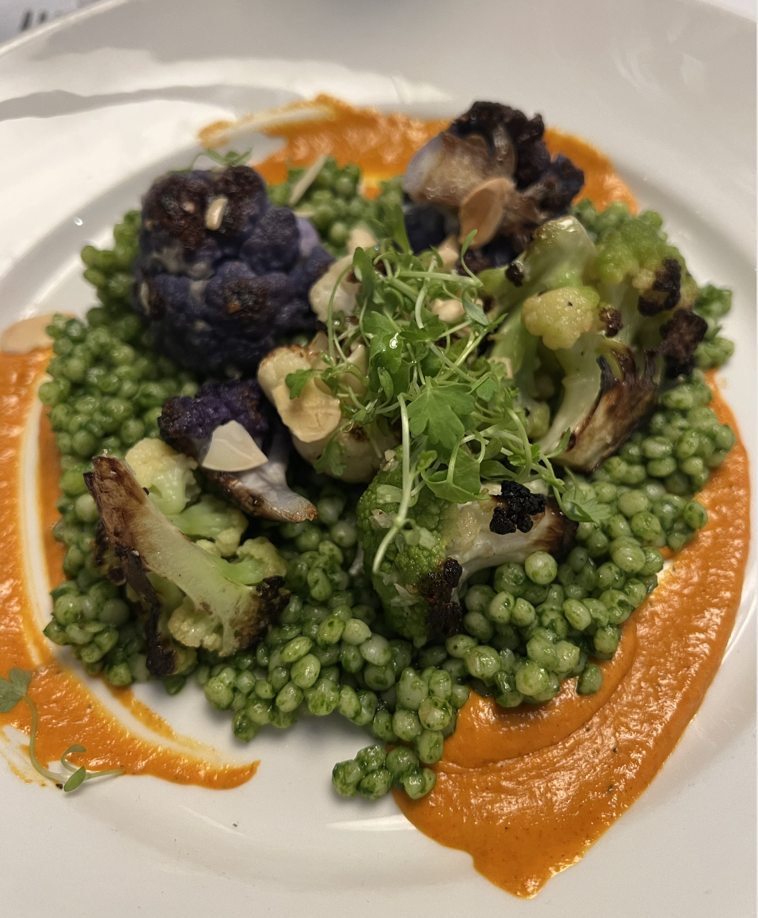 There were also a lot of vegan options on the menu. We ended up getting the spring chopped salad, the cauliflower couscous dish, the spicy tomato sauce pasta (the pasta shape choice was elite), and a coconut tapioca pudding for dessert that the waiter said we had to try. Everything was AMAZING. We literally could not stop eating and it felt like we were actually in Italy. If you love Italian food and are vegan and are in Vegas (I know that’s a tall order haha), you must come here!! They also had kombucha and sparkling apple cider for the sober peeps out there! I’m not sober, but I was at this dinner lol.