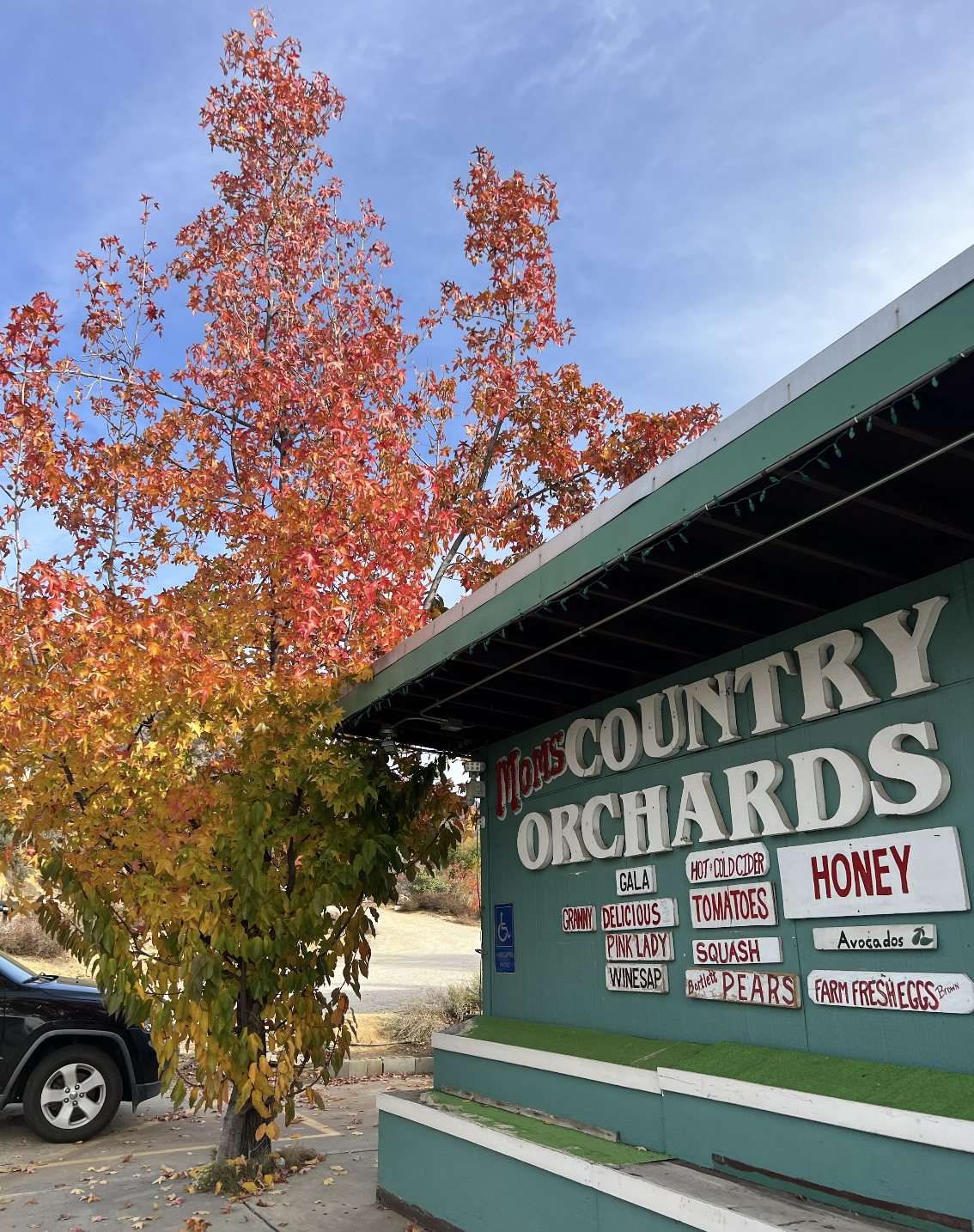 Anyway, the leaves on all the trees are red, orange, yellow, you name it. The whole town is filled with apple orchards and candy stores and little markets full of fresh produce and cider. It almost feels like you walked into a Hallmark movie.