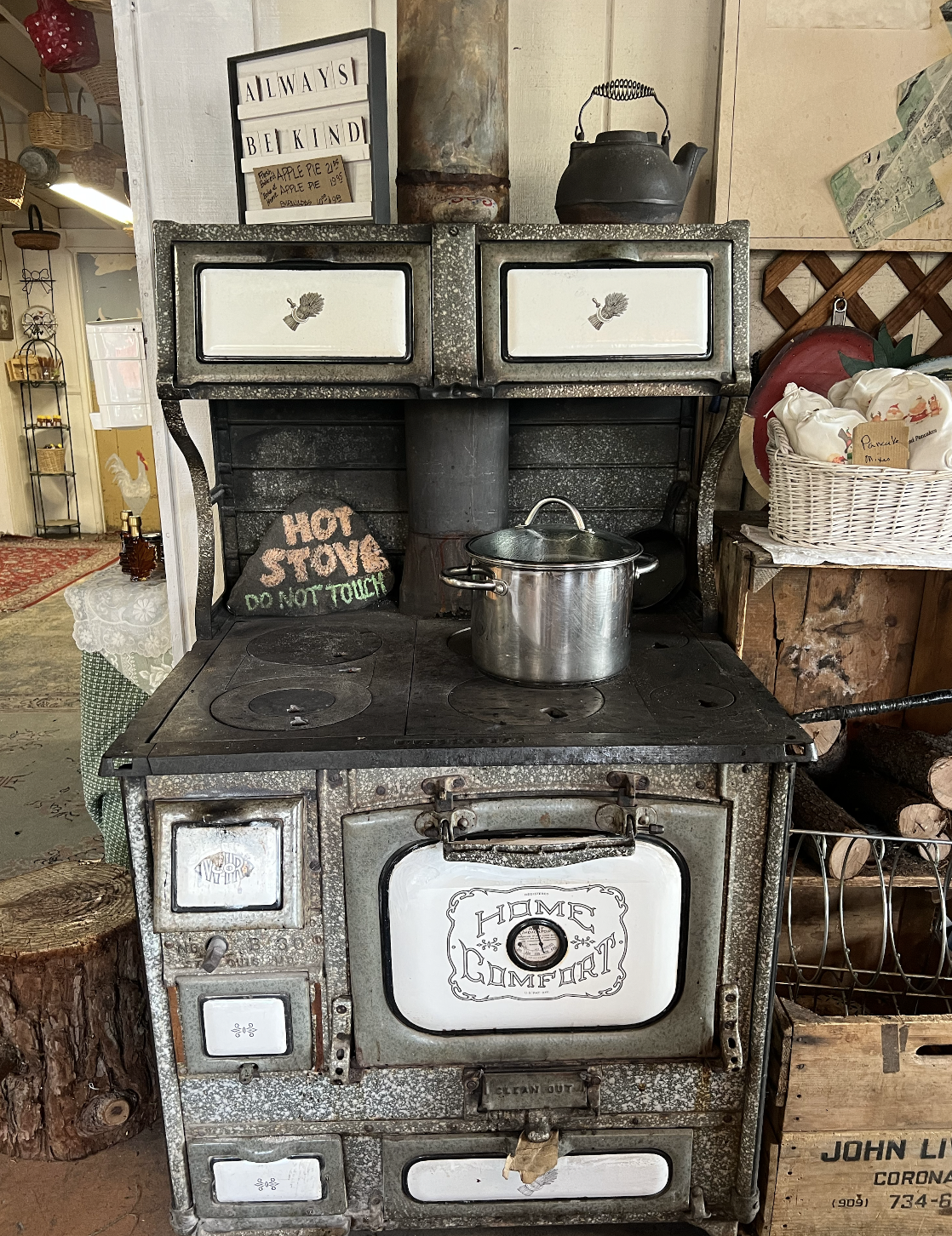 Our first stop was Mom’s Country Orchard and it was literally the cutest little shop we have EVER been to. It had a running stove with hot cider, fresh jams and honey (that you could try and taste before purchasing), fresh caramel apples, pickled foods, and a little gift shop/antique store with goods made/collected by an elderly woman who lives in the area. How freakin cute? I could melt. Also, the two women running the store were so, so kind and accommodating and gave our pups treats! Very pet (and human) friendly.