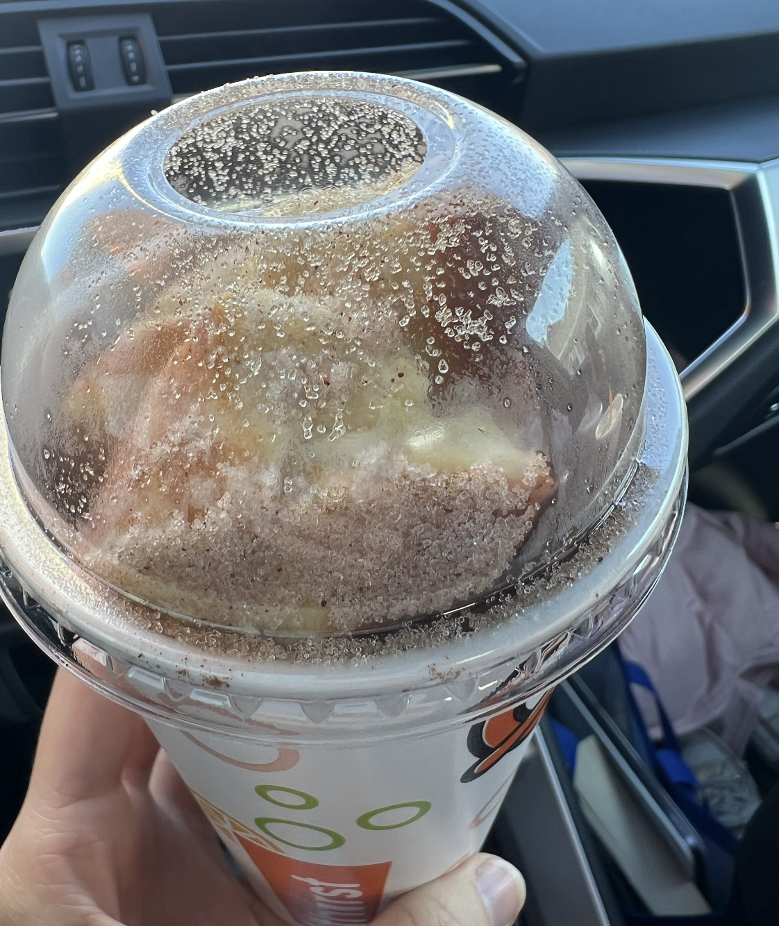 I got a “Johnny and June: (sprite, tiger’s blood syrup, & coconut cream) with passionfruit syrup added and Bella did a make-your-own with mountain dew and passion fruit, and guava syrup. We also got two citrus spa waters (water, oranges, lemon, lime, and frozen mango) and freshly made non-buttered cinnamon pretzel bites and frosting (which we were told were vegan if we ordered sans butter). Everything was a TEN OUT OF TEN. I wish I could go back!!! Craving it so hard rn.