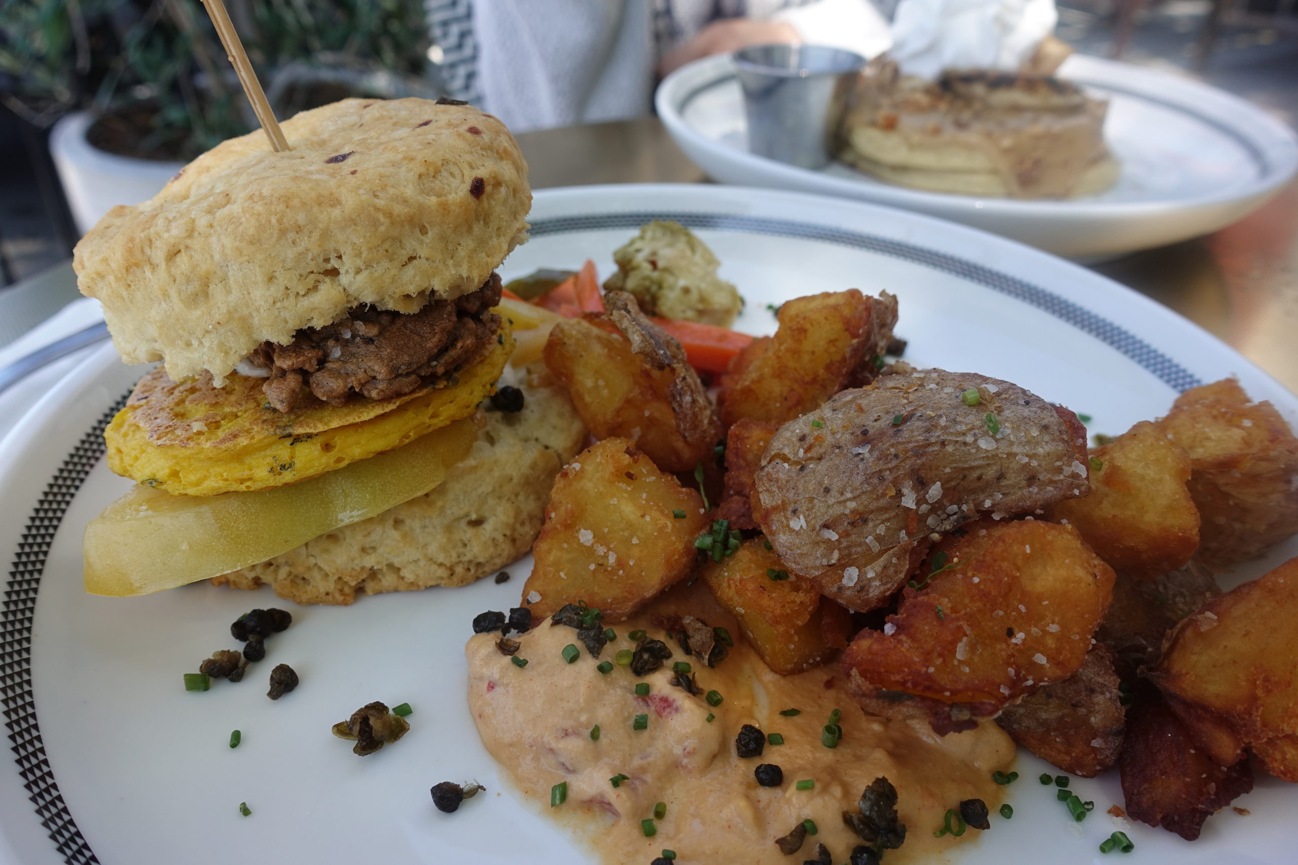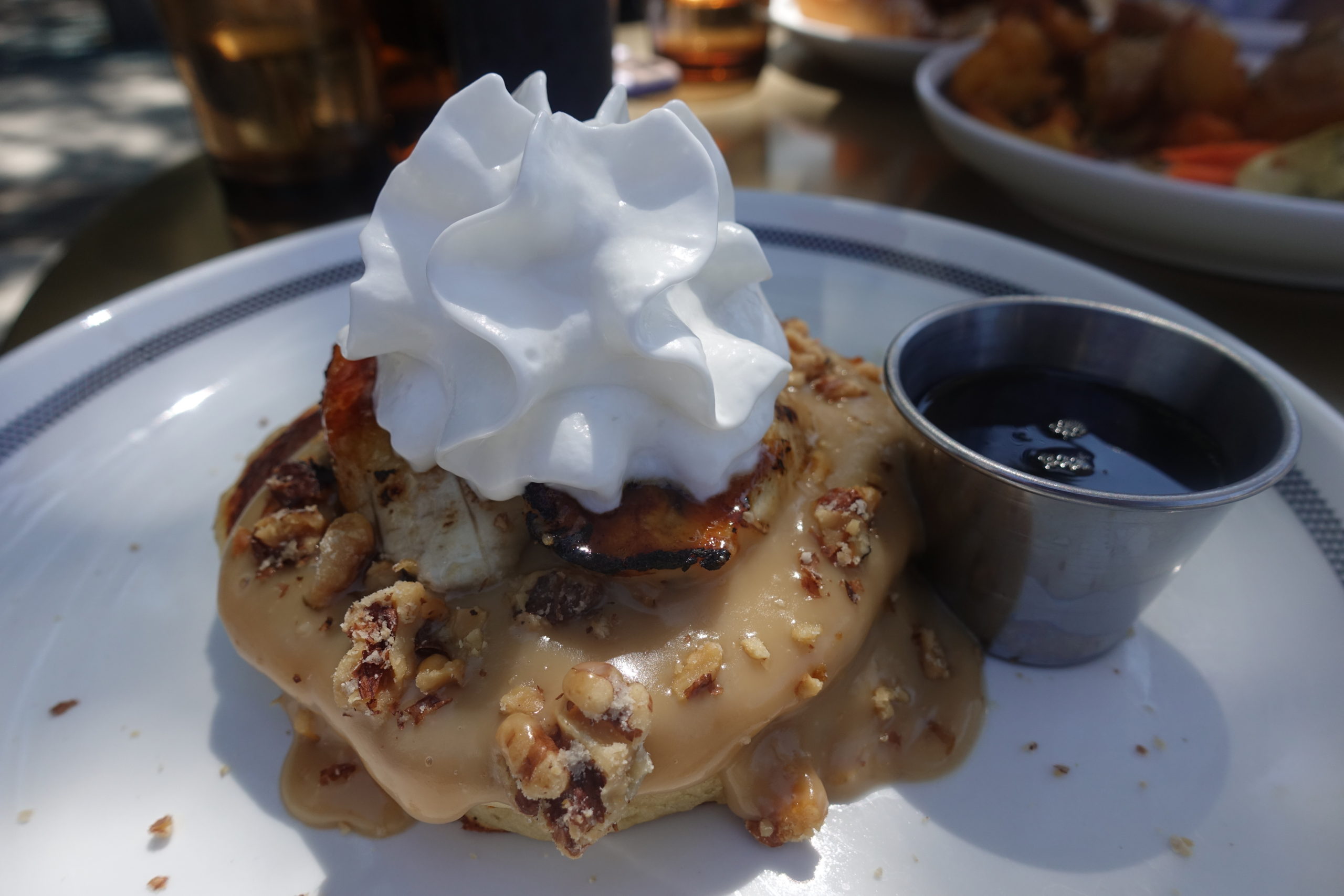 Next, we got the pancakes with caramelized banana, bourbon butterscotch sauce, whipped coconut cream, walnuts, and syrup. IT WAS INSANE. This is literally the type of breakfast I imagine is served to you in literal heaven by shirtless male models. Like I can’t explain the creativity and deliciousness in this dish. You must go get it for yourself.