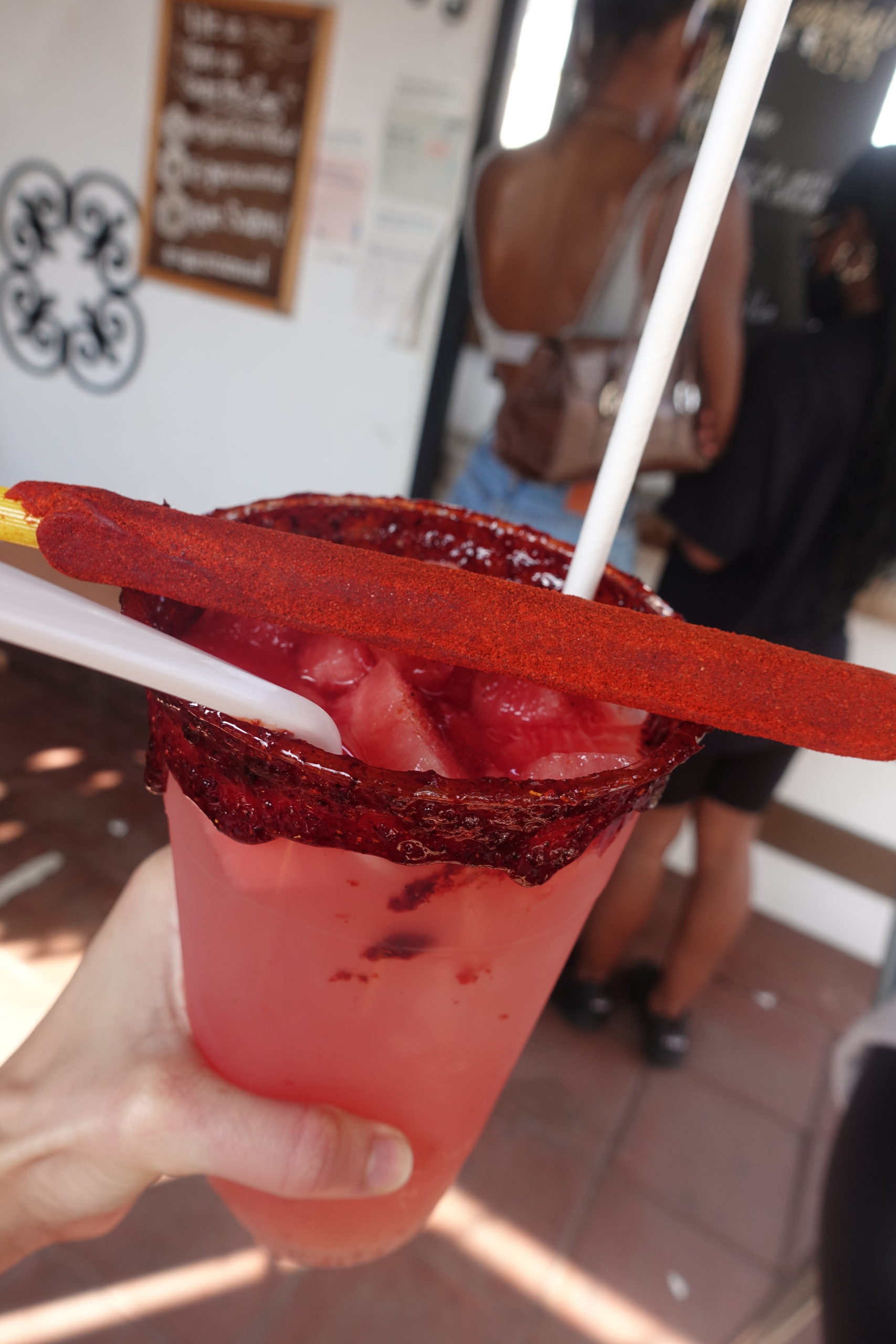 Right next to the dulceria was a little shack that sold aqua Frescas. Considering it was super hot and we were sweating balls, it would be a crime to not stop for one. We both got two watermelon aqua frescas with watermelon chunks and a tajin rim and tajin straw. SO refreshing! I wish we could have tried more food places. If only we had room in our stomachs…