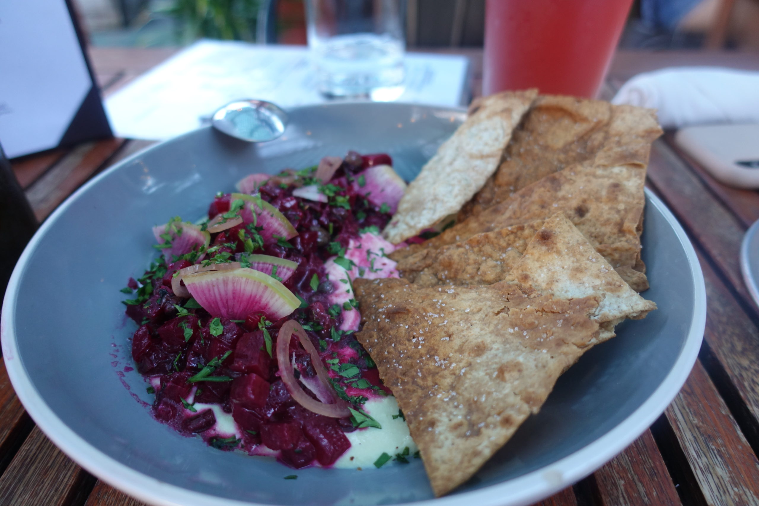For the appetizer, we got the beet tartare with whipped ricotta and toasted lavash. It was good and all the ingredients were fresh, but it wasn’t mind-blowing. It felt like it was lacking in flavor a bit.