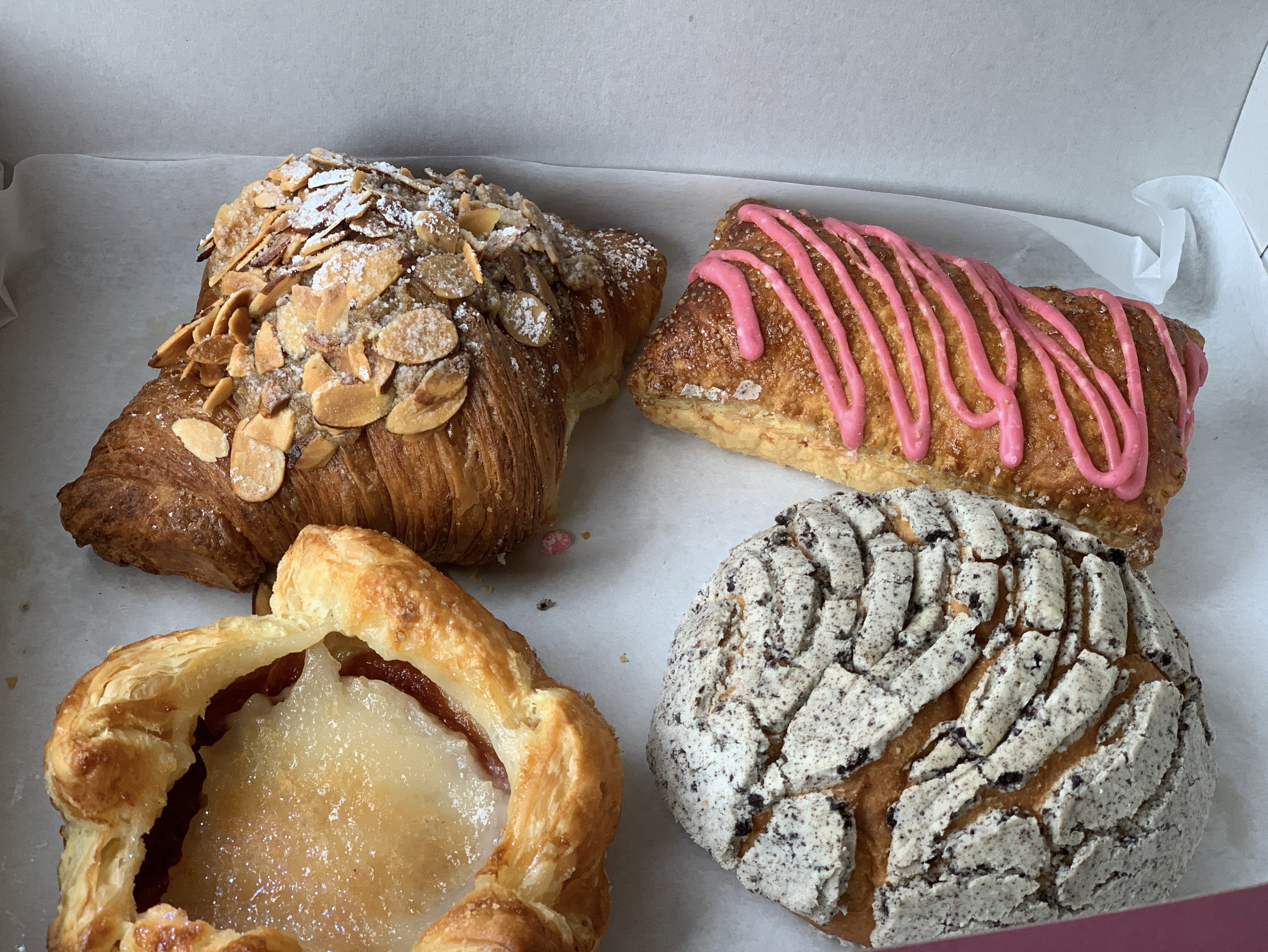 My sister and I ordered the oreo concha (YEAH), the almond croissant (best croissant flavor. FIGHT ME.), a berry pop tart, and a guava and cheese danish ( best pastry flavor in the entire world. Don’t @ me).