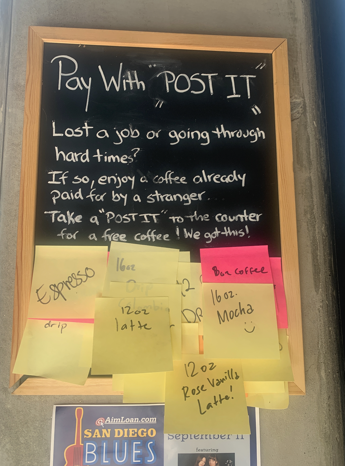 They even had a board of free drinks that people paid for, in case somebody came in and couldn’t afford one. We ordered a rose latte and added a sticky note to the wall.