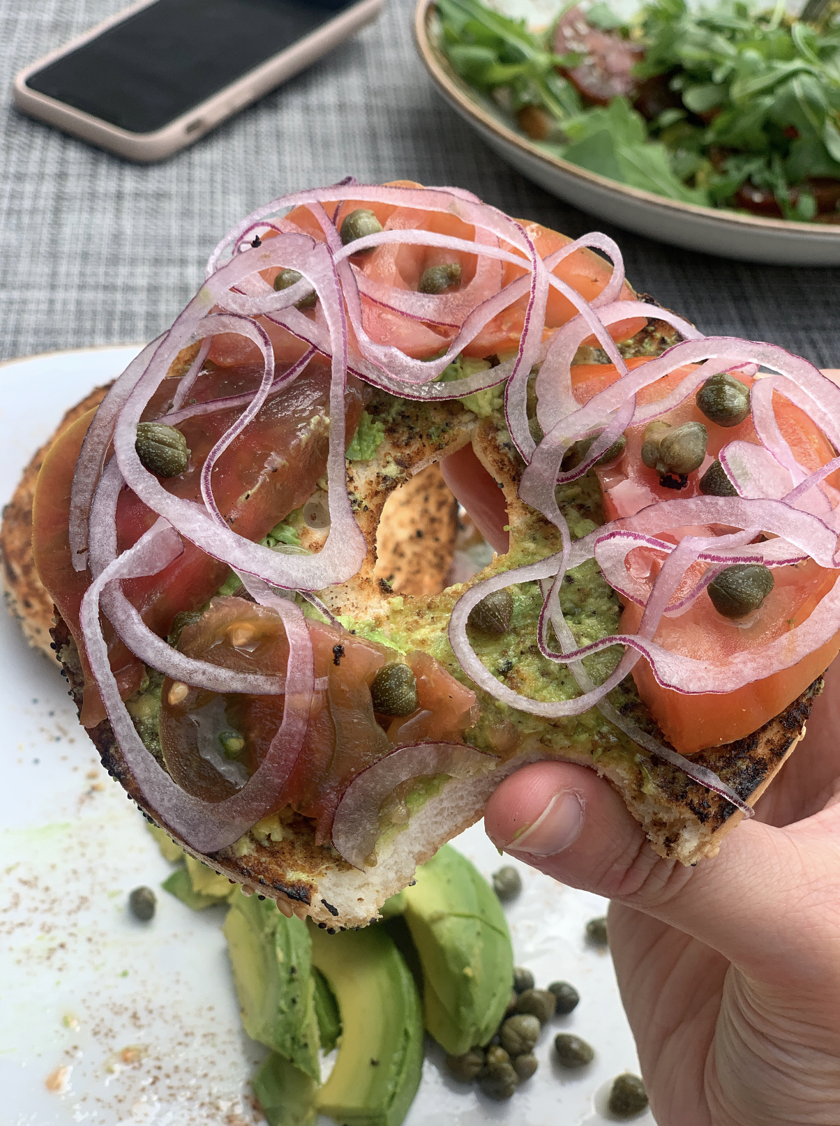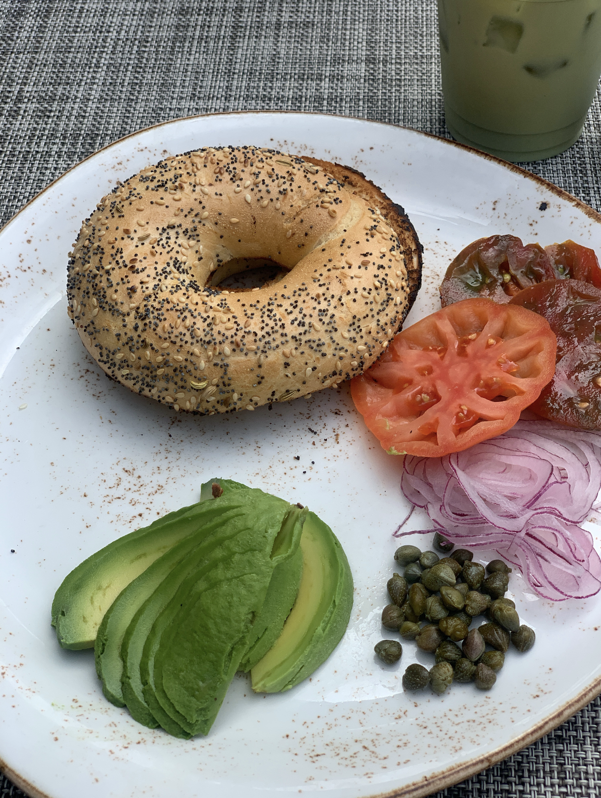 Their rooftop restaurant has a few modified vegan options. My sister got the avocado toast on sourdough bread with tomatoes. I got a plain everything bagel with a side of avocado, onions, capers, and tomatoes. Both were super yummy, filling, and the perfect breakfast to start the day. The bagel was surprisingly really yummy and so much better than the bagels I’ve had in LA. The bartender/lady taking our food was so helpful and nice too.