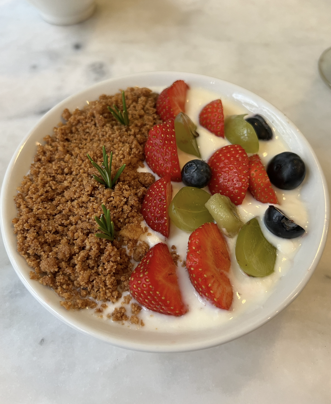 The yogurt bowl, on the other hand, was EPIC. I’m not sure what brand the vegan yogurt was or if it was homemade, but it was silky and had the perfect amount of sweetness. The fruit on top was super fresh, and the granola was delicious and had an amazing sanded-down texture that really complimented the bowl. Also, visually, it was super cute and aesthetic.