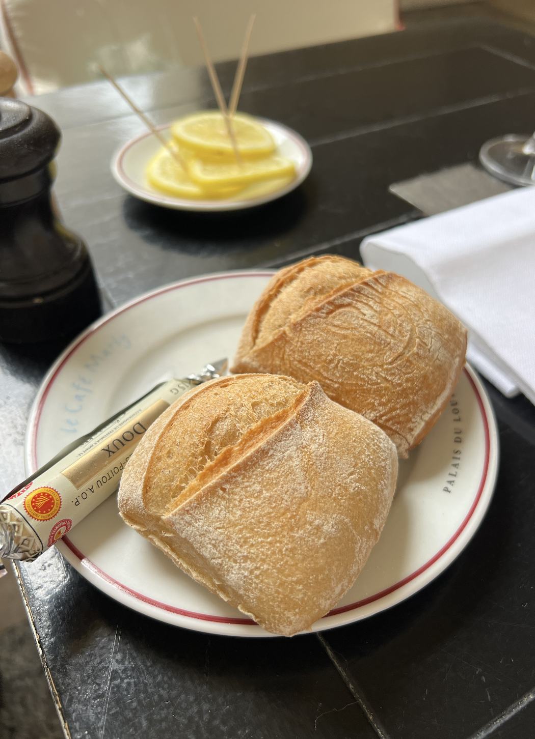 Again, Café Marly isn’t an all-vegan restaurant, but they did have yummy complimentary bread (just make sure to skip the cute candy-wrapper-looking butter) and a vegan quinoa/kale/avocado salad on the menu! How cool!