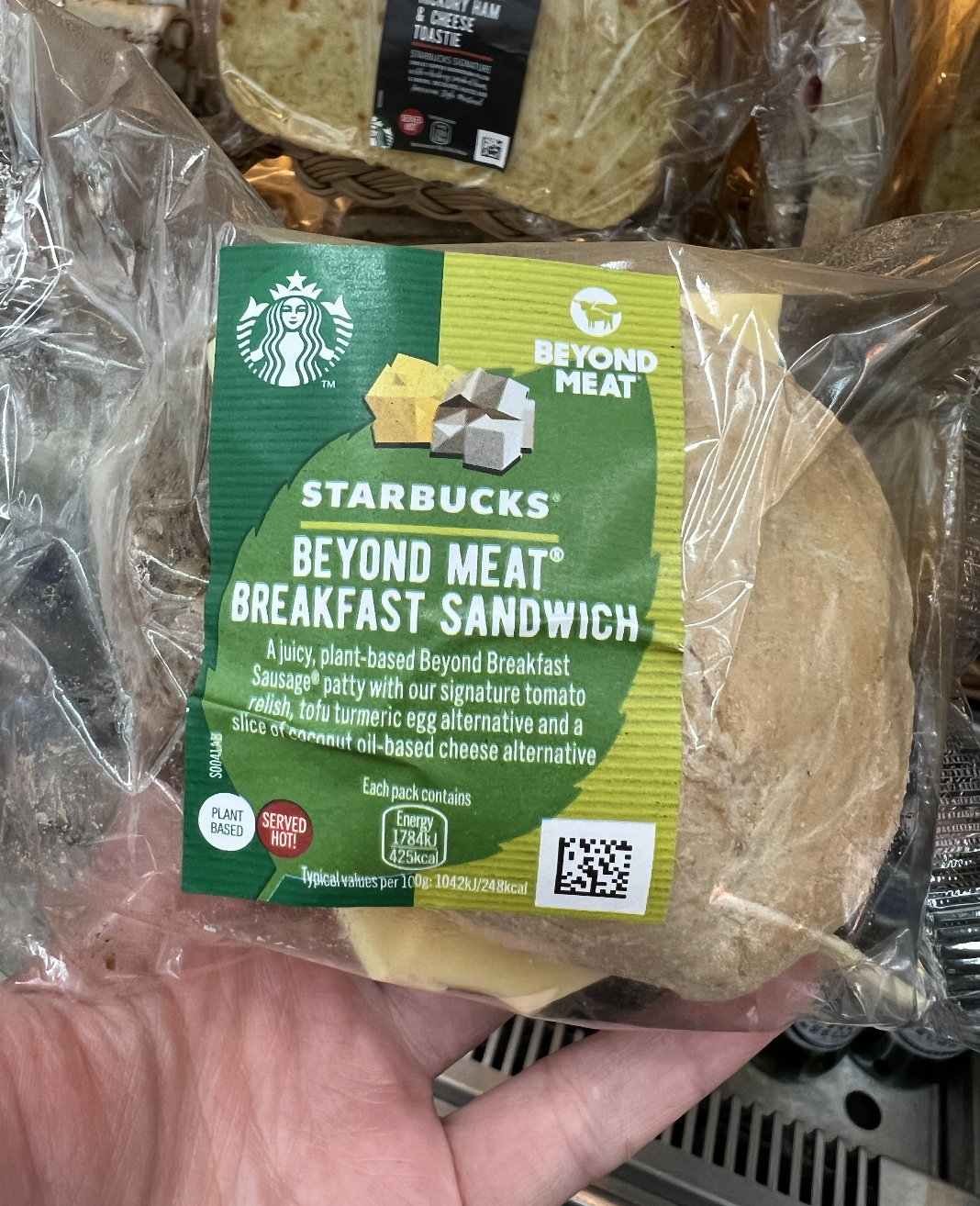 Do you know what the vegan food options at the UK Starbucks are? Literally EVERYTHING under the sun. They had a diverse variety of pre-packaged vegan breakfast sandwiches, wraps, overnight oats, smoothies… not to mention, they had not one but TWO vegan desserts in their pastry display. Can you imagine??