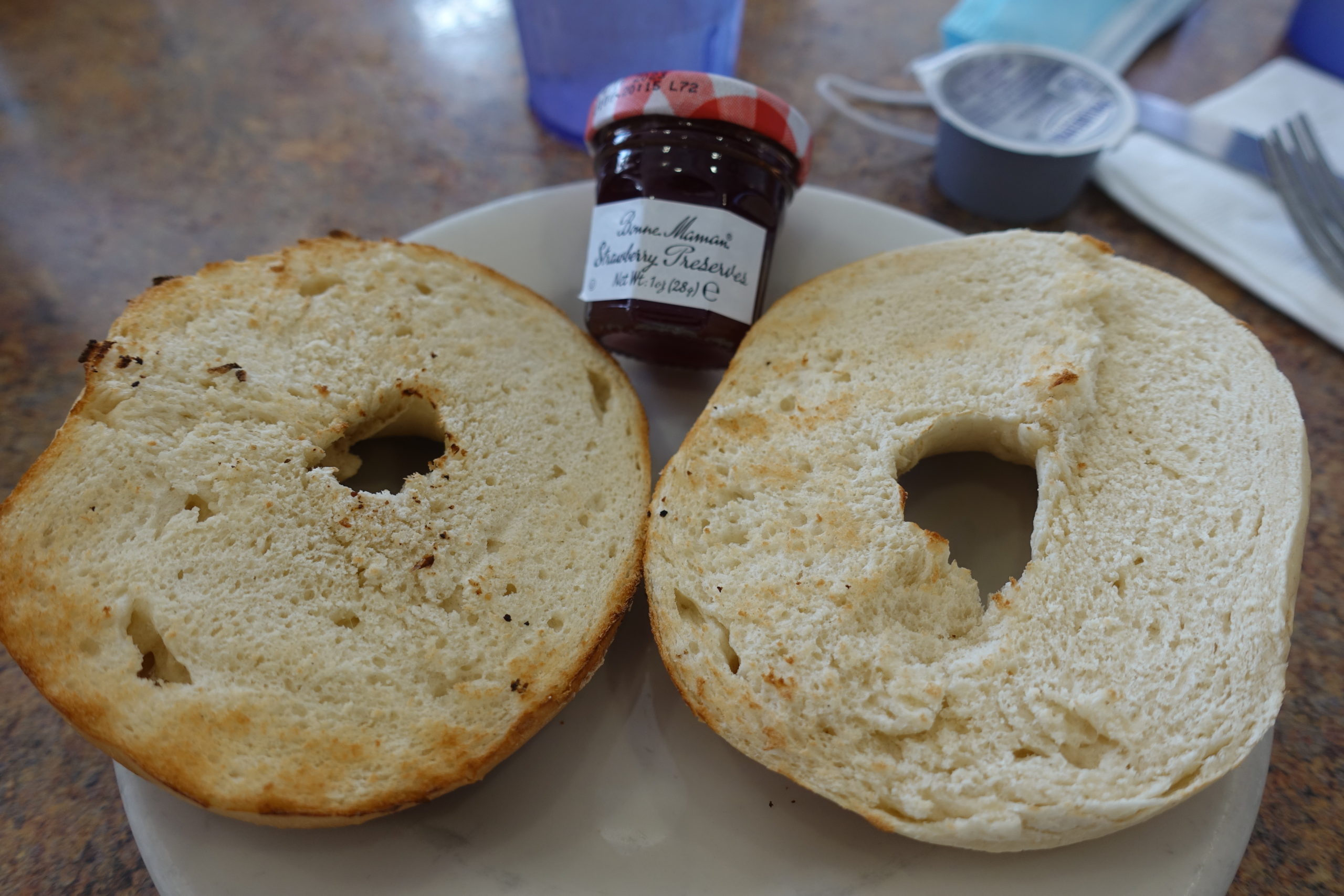 - So this was actually the first place we came when we arrived. Unfortunately this was the place that only served whole milk – shocking, I know. They didn’t have a crazy amount of options, but they did have oatmeal made with water and plain bagels with jam. Again, would I run here? No. But would this place have options for you? Yes!